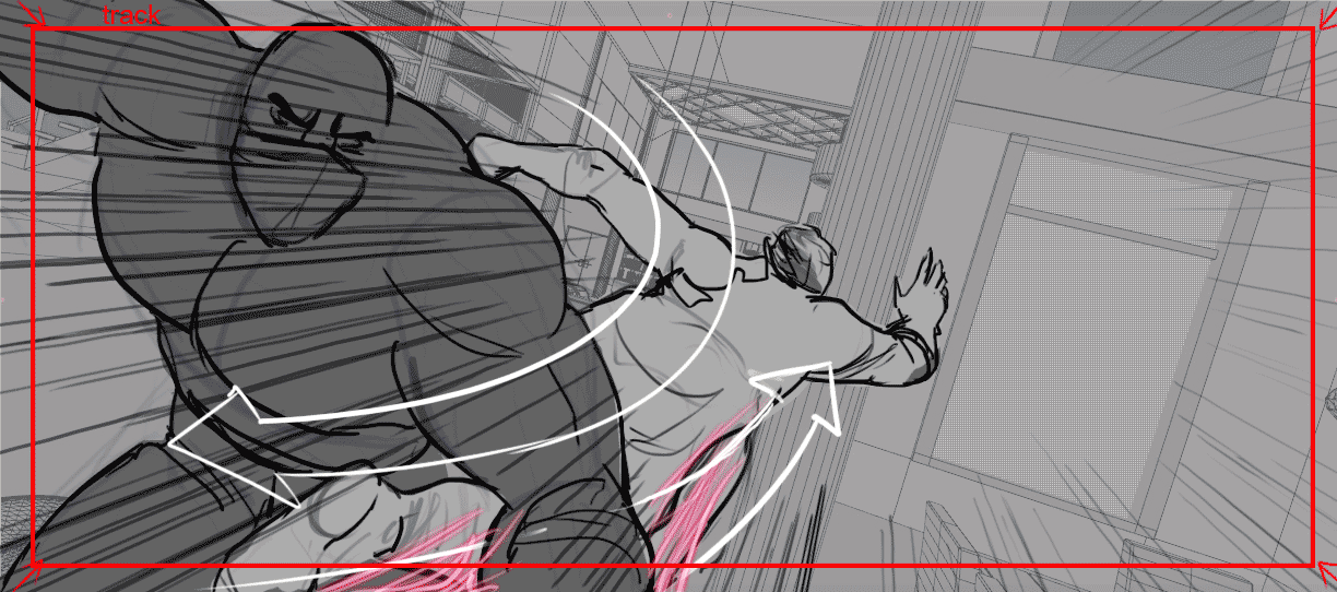 One of the scenes that provides some of the villain’s backstory in the film. Unusually these boards where colored to provide a sense of the lighting and the foreboding mood.